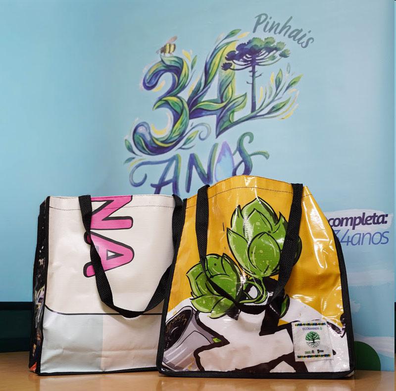 com a transformação nas chamadas “Ecobanners”, que são sacolas sustentáveis distribuídas em ações especiais. “A ideia surgiu depois da participação da equipe em um congresso. Como temos muitos banners, feitos com material resistente, fizemos essa ação. Depois, aumentou a quantidade de material para ser reutilizado, outras secretarias aderiram, e por isso fizemos um processo licitatório”, explica a Diretora do Departamento de Planejamento, Conservação e Educação Ambiental da Semma, Juliana Zanetti. Segundo ela, além de úteis, os Ecobanners são um símbolo do compromisso de Pinhais com a gestão responsável de resíduos e com a promoção da educação ambiental. “Essa proposta tem como objetivo reduzir a geração de resíduos e incentivar práticas sustentáveis.