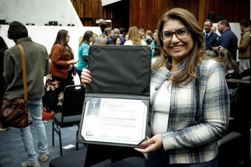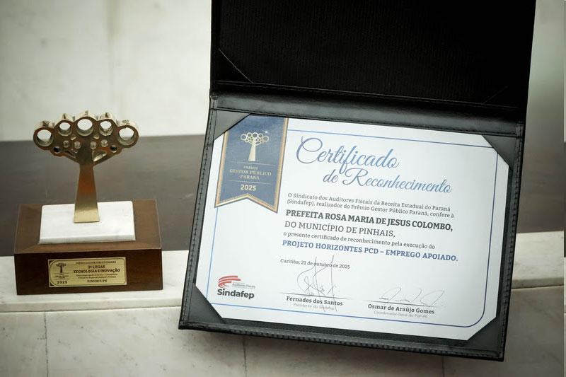 Pinhais mais uma vez ganhou destaque no Prêmio Gestor Público Paraná. Nesta edição, o município recebeu o Certificado de Reconhecimento com o projeto Horizontes PcD e o 2ª lugar na categoria Tecnologia e Inovação com o projeto Consultório Virtual de Especialidades. A entrega das premiações foi realizada durante solenidade na Assembleia Legislativa do Paraná, na terça-feira, 21 de outubro. O tema da 13ª edição do prêmio foi “Acessibilidade e Inclusão – O espaço público com dignidade para todos os cidadãos”. Para a prefeita de Pinhais, Rosa Maria, o reconhecimento celebra o trabalho desempenhado pela equipe em Pinhais. “Tive a honra de receber esses dois prêmios por projetos que fazem a diferença na vida das pessoas. Então, dedico essa vitória a todas as servidoras e servidores que, com dedicação e empenho, tornam possível transformar essas ideias em realidade”, afirmou.
