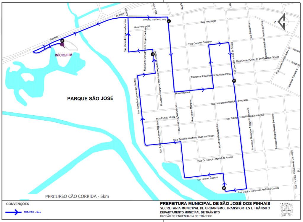 A Rua Veríssimo Marques, no Centro de São José dos Pinhais, será totalmente bloqueada a partir das 18h deste sábado (25) para a realização da 1ª Corrida do Grupo Tigre. Já no domingo (26), a partir das 5h, vias próximas ao Parque São José também terão interdições temporárias para a realização da Cão Corrida e da Caminhada da CIOC.