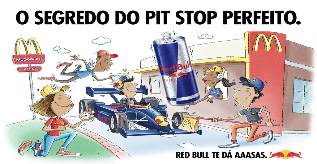 marca nas pistas durante o GP de São Paulo 2025. O logo do Méqui aparecerá em destaque na frente do halo do carro e na garagem da equipe, em uma ação que reforça a conexão entre duas marcas reconhecidas por sua energia, inovação e apelo global. Para celebrar o momento, o McDonald’s e a Red Bull lançaram um cartoon exclusivo, com o estilo característico da Red Bull, retratando de forma divertida a união entre o sabor inconfundível do Méqui e a energia única da Red Bull. A arte simboliza o início de uma parceria que promete acelerar o coração dos fãs de automobilismo e dos consumidores das duas marcas. Durante oito semanas, o público poderá sentir de perto essa fusão entre gastronomia e alta velocidade, com ações especiais em lojas selecionadas e ativações urbanas que antecipam o clima do GP de São Paulo.