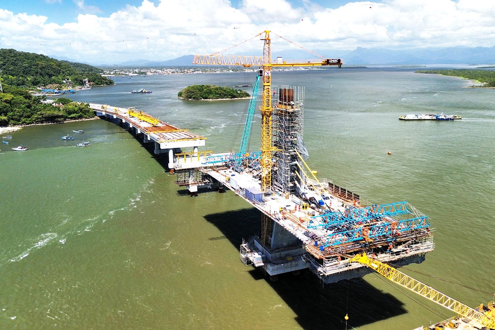 A operação é parte do processo construtivo do chamado trecho estaiado, que terá 320 metros de extensão, incluindo um vão central de 160 metros sobre o canal de navegação, conforme o projeto.
