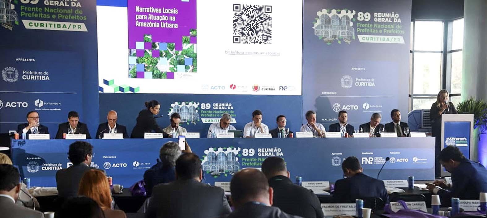 ver iniciativas climáticas locais até meados do ano que vem, principalmente nas áreas de Mobilidade Urbana, Gestão de Resíduos e Orçamento Climático. Curitiba também foi contemplada na área de Orçamento Climático, e terá acesso de forma mais ágil a financiamentos internacionais. Após o encerramento das discussões na Arena da Baixada, os participantes da 89ª Reunião Geral da Frente Nacional de Prefeitos (FNP) foram recebidos em um coquetel na Ópera de Arame.