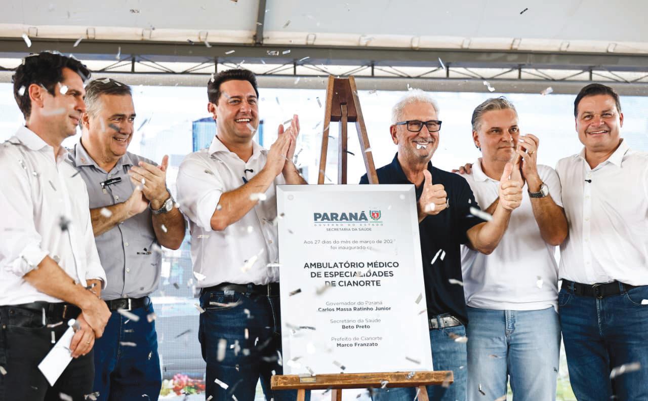 O governador Carlos Massa Ratinho Junior inaugurou nesta sexta-feira (27) o Ambulatório Médico de Especialidades (AME) Tipo II em Cianorte, no Noroeste. A unidade, com investimento de R$ 17,5 milhões da Secretaria de Estado da Saúde (SESA), área de 2.627 m², 22 consultórios e sete salas de exames, será gerenciada pelo Consórcio Público Intermunicipal de Saúde do Centro Noroeste do Paraná.