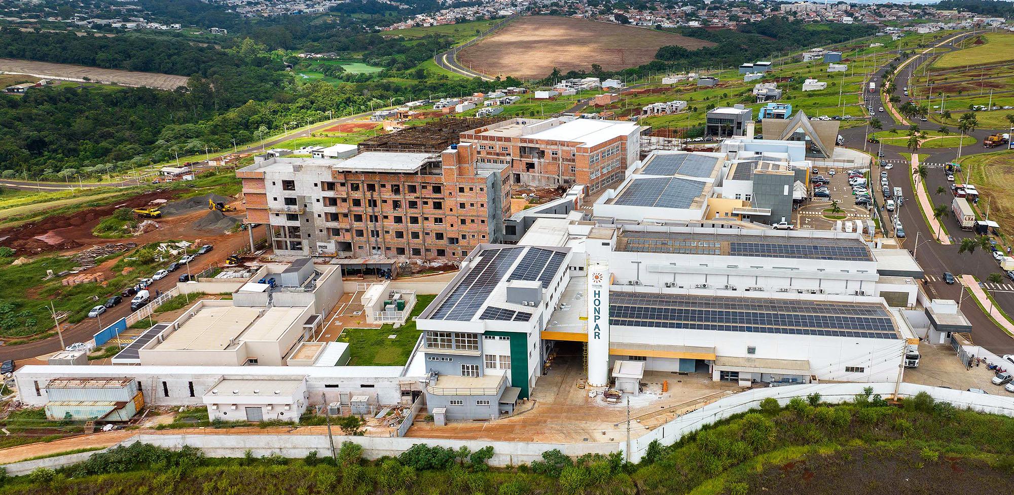 dade HONPAR, com mais de 200 alunos nos cursos de Medicina e Radiologia. A estrutura atual opera em uma área de 10 mil metros quadrados, oferecendo mais de 100 leitos e 36 leitos de UTI, centro cirúrgico com seis salas, setor de diagnóstico com Tomografia, Raio-X e Ressonância Magnética de 3.0 Tesla, e hemodinâmica com duas salas em funcionamento, incluindo a primeira máquina IGS 7 Robotizada da GE na América Latina. Com as obras em andamento, que vão aumentar em 30 mil metros quadrados a área construída, o HONPAR será o maior polo de saúde da região, com capacidade de internação de mil leitos SUS e 200 leitos em nova ala de apartamentos; ampliação para um total de 250 leitos de UTI; centro cirúrgico de alta complexidade com 32 salas cirúrgicas; ampliação para quatro salas de Tomografia e três de Ressonância; criação do Espaço Mulher, de mamografia com atendimento humanizado; mais de 100 consultórios para atendimento SUS; e heliponto para agilizar o transporte de emergência.