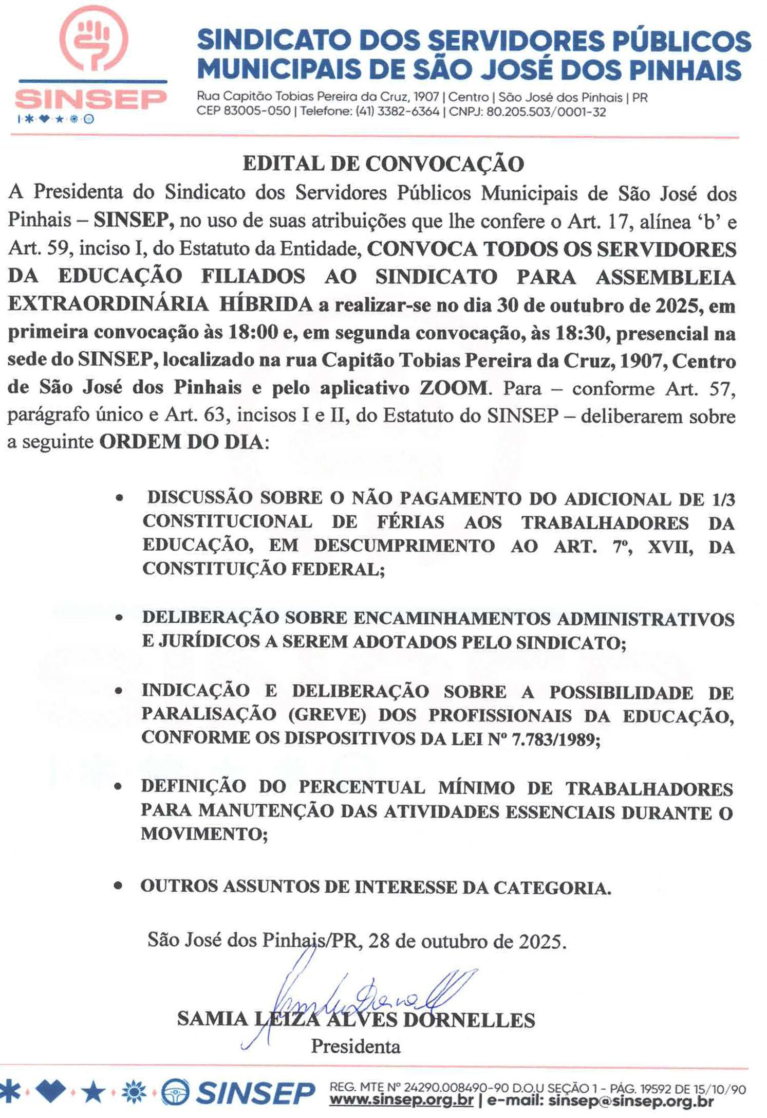 A Pregoeira designada pelo Decreto nº 389/2023, considerando o interesse da administração, resolve SUSPENDER temporariamente o procedimento em referência para revisão do Edital. Oportunamente serão divulgadas novas informações. Pinhais, 28/10/2025.