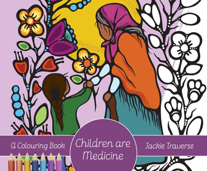 Children Are Medicine is the fourth colouring book by Anishnaabe artist Jackie Traverse. This new book contains both new drawings and original art by Jackie Traverse. Children are Medicine honours the place of children in the lives of Indigenous Peoples. Indigenous children were specifically targeted as part of a colonial mission which removed them from their families, their culture, and their vital role in sustaining their communities. In this book, Jackie pays tribute to and celebrates the joy and vitality that children bring to the life of communities. The love that children generate is vital to healing Indigenous Nations.
