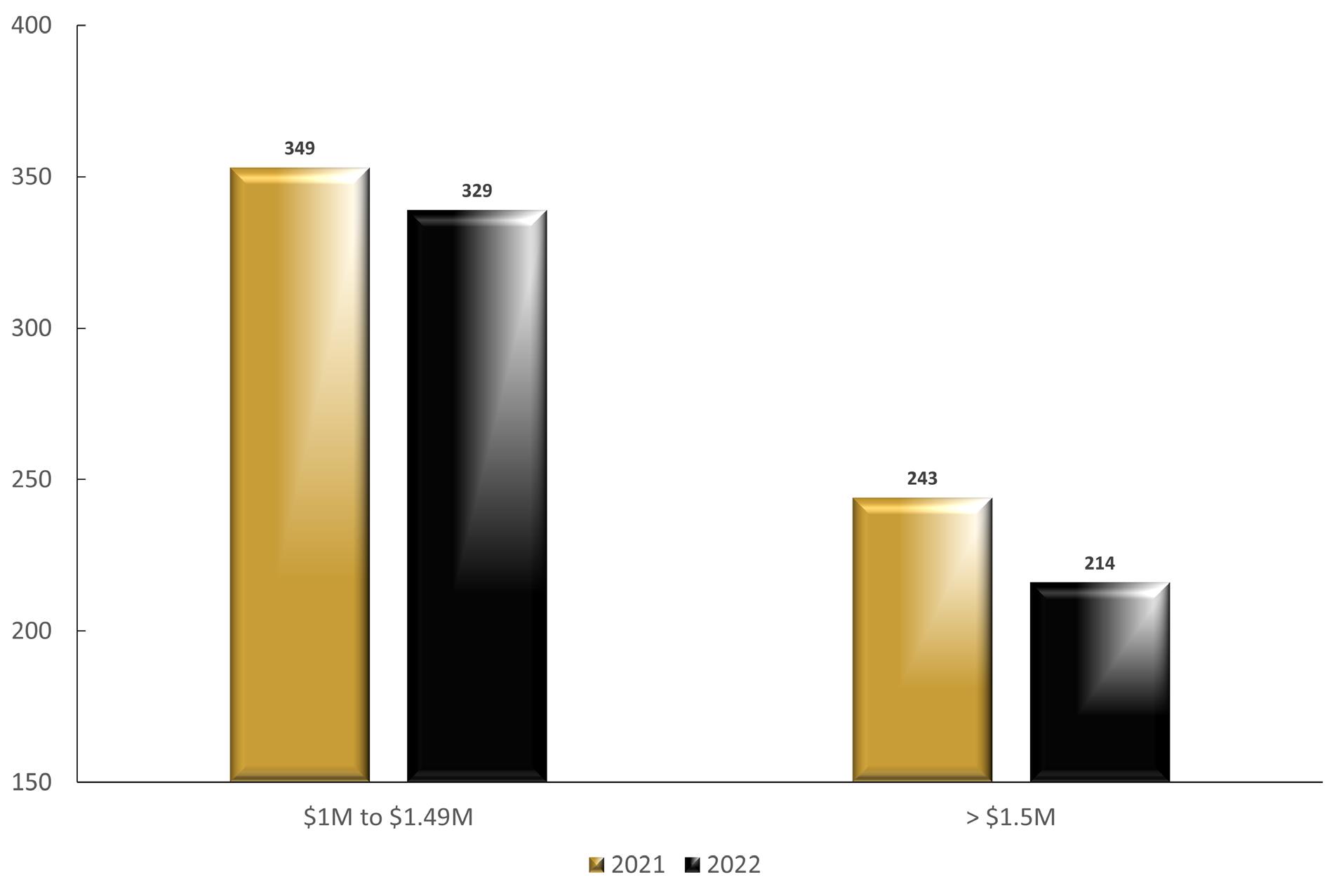 NUMBER OF LUXURY HOMES SOLD OVER $1,000,000