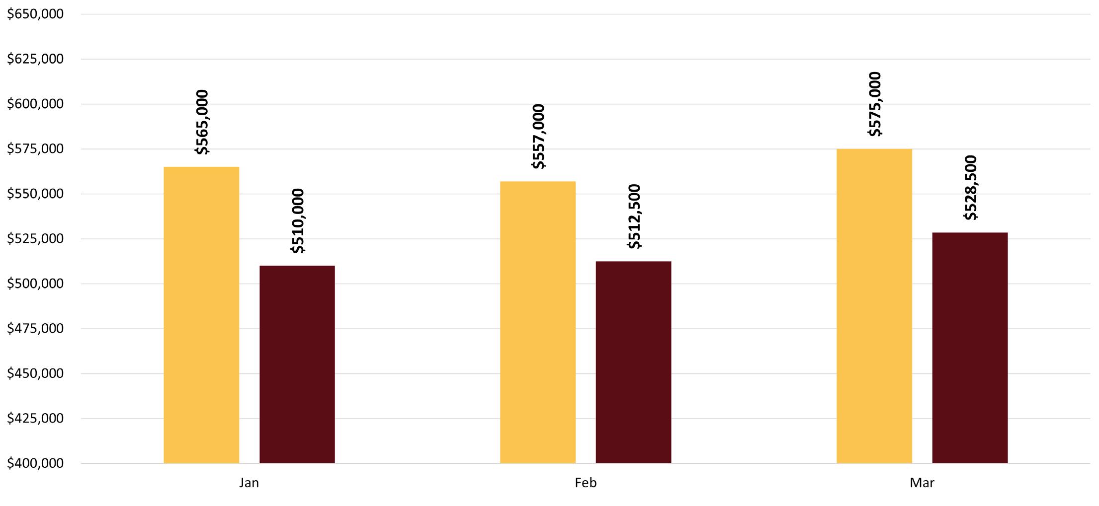 The Sparks median sales price for an existing single-family residence in March 2023 was $502,500; a decrease of 9.1 percent from last year and an increase of 0.1 percent from last month. All sales numbers are for existing “stick built, single-family dwellings” only and do not include condominiums, townhomes, manufactured, modular, or newly constructed homes. The existing condominium/townhome median sales price for March 2023 in Sparks was $295,000; a decrease of 0.8 percent from last year.