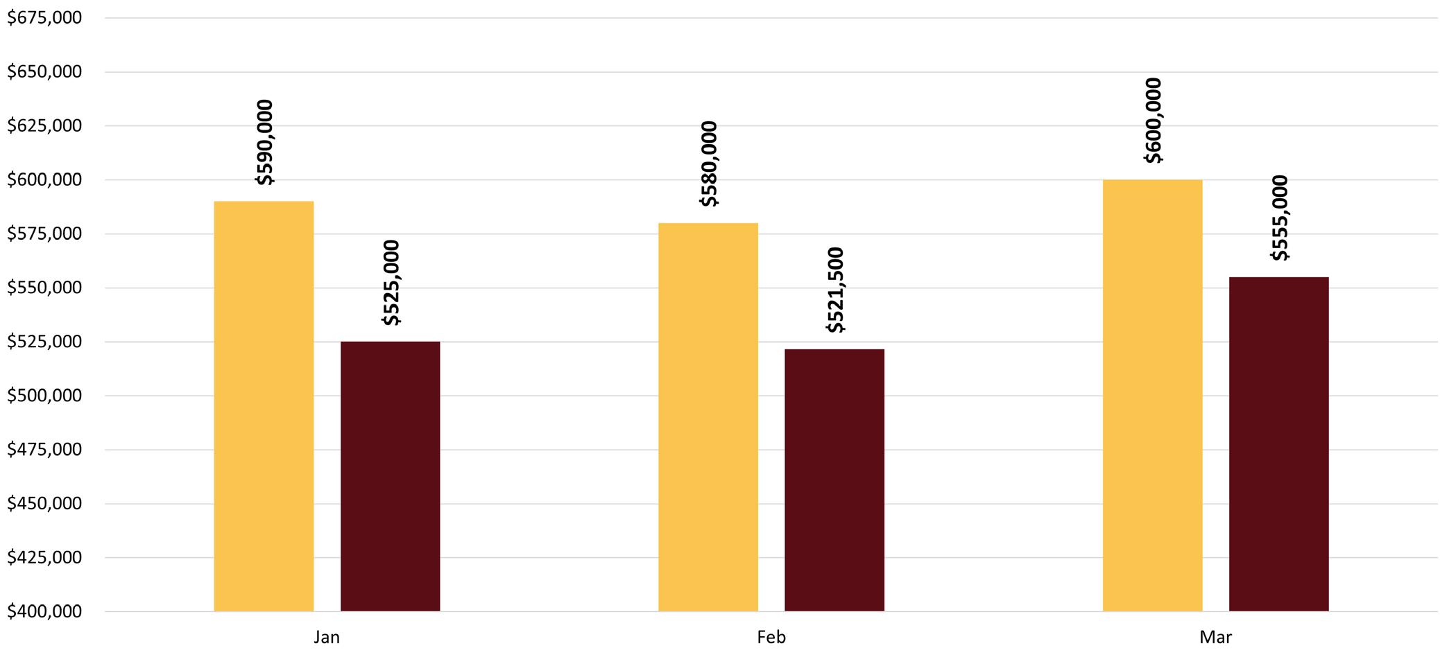 The median sales price in Reno for an existing single-family residence in March 2023 was $555,000; an increase of 6.4 percent from last month and a decrease of 7.5 percent from 2022. All sales numbers are for existing “stick built, single-family dwellings” only and do not include condominiums, townhomes, manufactured, modular, or newly constructed homes. The existing condominium/townhome median sales price for March 2023 in Reno was $321,000; an increase of 2.7 percent from the prior year.