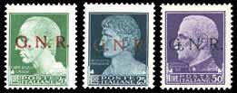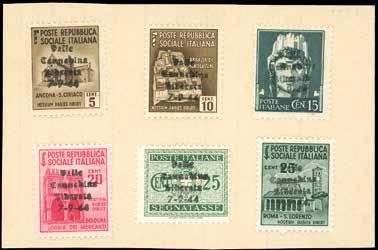 1169 ** REPUBBLICA SOCIALE ITALIANA PROPAGANDA DI GUERRA 1944 - Soprastampati (25/36), otto serie complete in blocchi di 16 con interspazio di gruppo al centro, non piegato. Non comuni, ottima qualità.