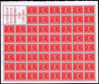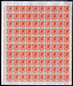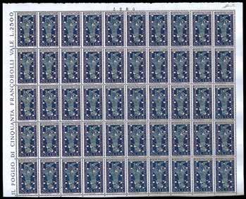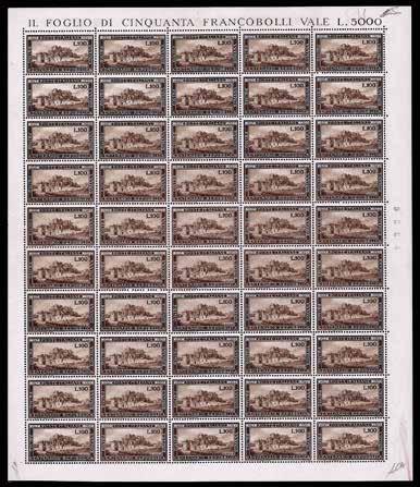 1165 ** REGNO D’ITALIA 1893/1896 - 10 cent., 20 cent. e 25 cent. Umberto I (60,61,62), fogli completi di 100 esemplari, generalmente buona/ottima centratura, gomma originale integra, perfetti e molto freschi.