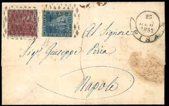 1162 * TOSCANA 1852/1858 - Bell’insieme di 8 lettere ed un grande frammento, con affrancature e annulli del periodo. Diverse firmate da noti periti. Ottimo per dettaglio. Ex coll. Imperato.