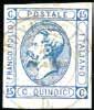 90 1852 - 40 cent. celeste (5), varietà di stampa sul lato sinistro, usato con annullo leggero, quasi invisibile, ben marginato, assottigliato. Ottimo aspetto.