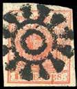 83 CHIAVENNA, muto punti R5 - 15 cent. rosso, I tipo (3), perfetto, usato con il rarissimo annullamento muto praticamente completo. Rarità. E.Diena, Ferrario. Cert. Bottacchi.