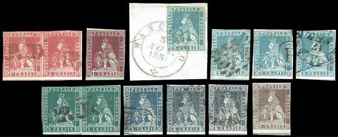 1163 /r TOSCANA 1852/1860 - Insieme di francobolli e frammenti usati delle varie emissioni, varietà di tinte e carte non conteggiate. Qualità mista. Ex collezione Imperato.