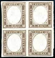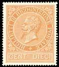 26 1862 - 10 soldi bruno mattone (34), impronta in albino di uno spazio tipografico in alto a destra, usato, perfetto. Molto Raro! Cert. E.Diena.