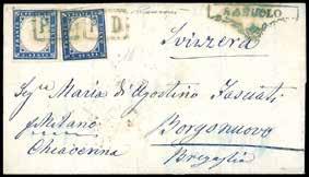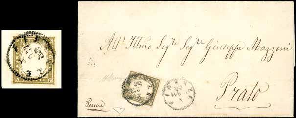 81 * BAGNOLO, C1 punti 11 - 20 cent. IV emissione di Sardegna (15B), separato a mano, su lettera del 10/11/1859 per Brescia. Ex coll. Imperato.