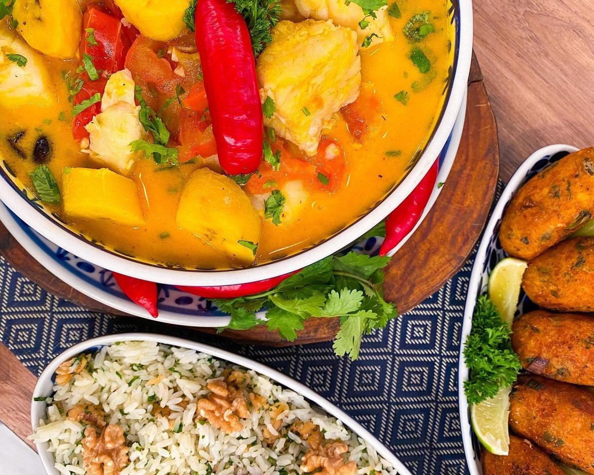 Conhecido por seus sabores ricos e aromáticos, além da apresentação vibrante e colorida, a moqueca é um prato tradicional das regiões litorâneas dos estados da Bahia e do Espírito Santo. Ensopada, a receita leva peixe ou frutos do mar como ingredientes principais, sem contar com a combinação harmônica das ervas, do azeite de dendê e do leite de coco O prato é uma verdadeira explosão de sabores e não poderia ficar de fora do livro de receitas do Chef Olivardo Saqui, do restaurante português Quinta do Olivardo, em São Roque. Apaixonado pela culinária lusitana e pelos sabores brasileiros, Olivardo adaptou a receita e deixou a moqueca brasileira com um gostinho português.