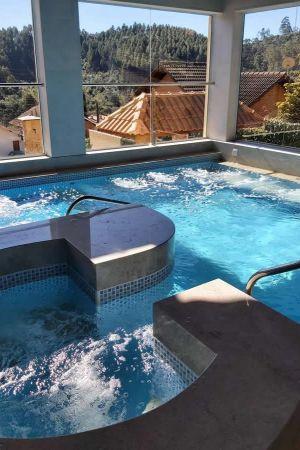 Espaço interno com salão de jogos (pebolim, dardos, tênis de mesa, bilhar), piscina (SPA) aquecida com jacuzzi e hidro Um aconchegante redário com lareira de chão para degustar um vinho e assar marshmallows para completar o seu lazer.