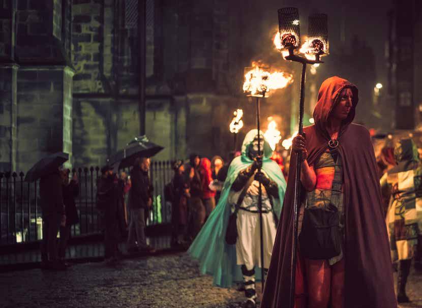A la veïna Escòcia abunden les desfilades que al·ludeixen al Samhain i a les antigues tradicions cèltiques. Són habituals les parades on s’endevina el futur i, en comptes de les carbasses tallades amb espelmes a l’interior, els escocesos utilitzen naps, com marcava la tradició. A la sempre misteriosa Edimburg s’organitzen incomptables recorreguts fantasmagòrics que acaben en cementiris i tombes subterrànies.