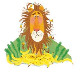 D’un petit sac, il sort une brosse et se recoiffe longuement. Le lion continue :