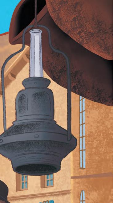 4 Lampe à pétrole avec bec Matador, cʼest-à-dire que la mèche circulaire sortait dʼun tube de cuivre, et montait sous un petit champignon de métal qui forçait la flamme à sʼépanouir en corolle.