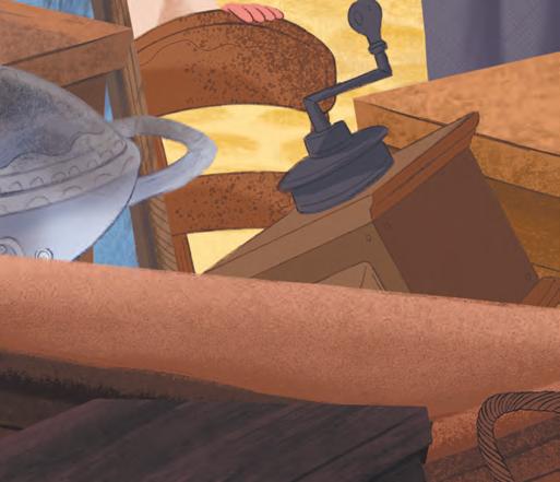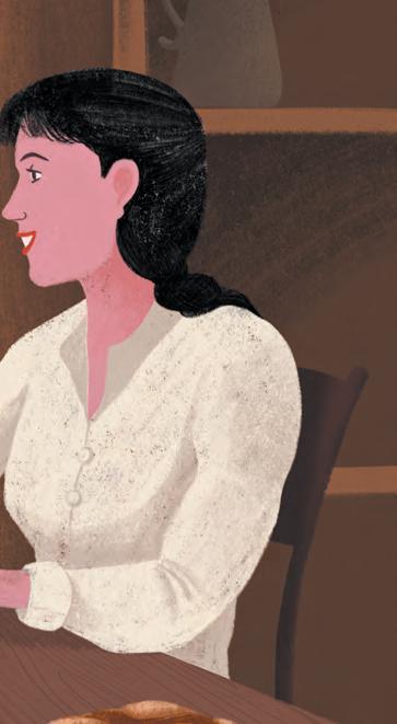Je trouvai mon père assis devant la table de la salle à manger. Il était en train de compter de lʼargent ; en face de lui, ma mère buvait son café. Ses nattes noires, qui avaient des reflets bleus, pendaient jusquʼà terre derrière sa chaise. Mon café au lait était servi.