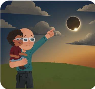 Le Soleil semble noir dans le ciel quand la Lune passe devant lui. C’est une éclipse. Il fait plus sombre sur Terre pendant quelques minutes.