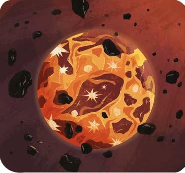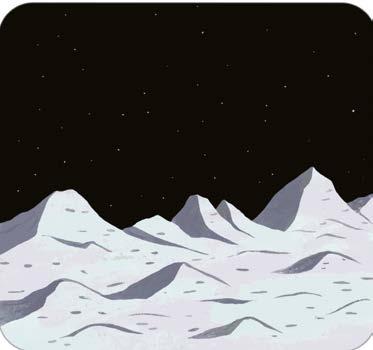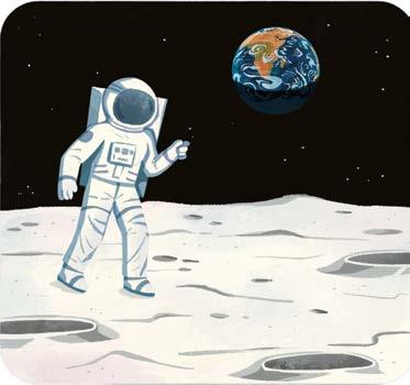 Le sol de la Lune est recouvert de poussière et creusé de trous qu’on appelle cratères. Des volcans sont éteints depuis longtemps.