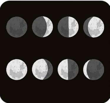 Dans le ciel, la Lune est ronde (pleine lune), en quartier, en croissant ou complètement dans l’ombre (Nouvelle lune). Dans ce dernier cas, on ne la voit pas !