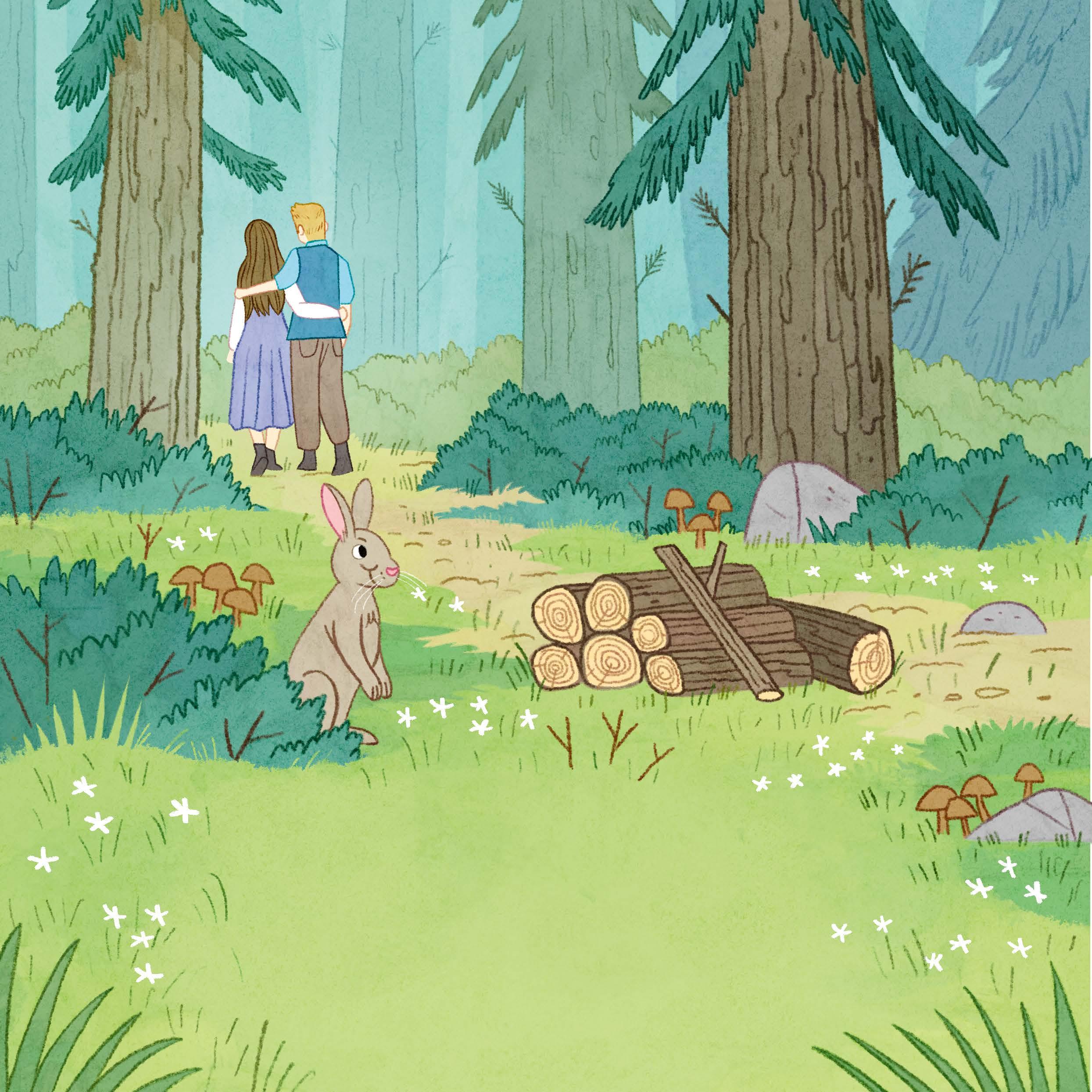 Le lendemain, la famille alla dans la forêt. À midi, Hansel et Gretel se partagèrent un morceau de pain.
