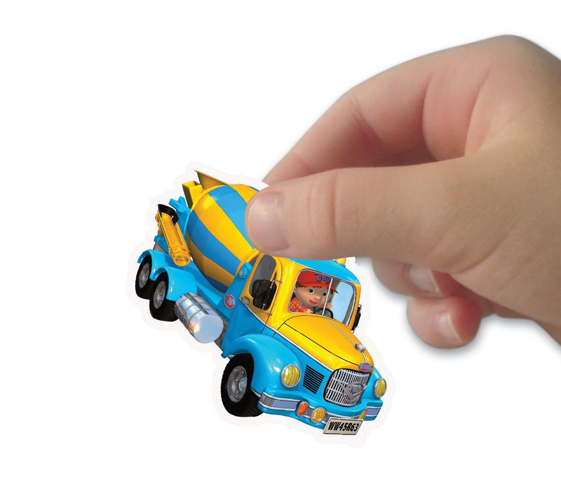 Pour découvrir les camions avec Léon tout en s’amusant avec des gommettes.