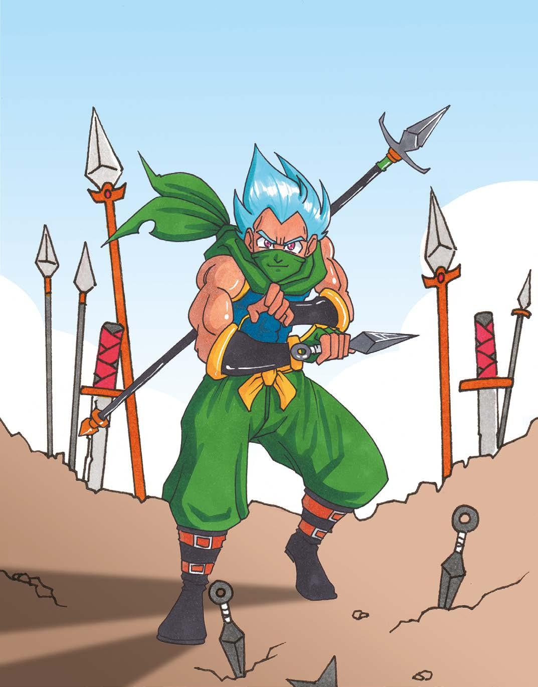 Grâce à ses capacités hors normes, le ninja est recruté pour de nombreuses missions. À cause de son métier dangereux, il s’attire beaucoup d’ennemis et provoque des querelles entre les clans. Il préfère cacher son identité et reste toujours sur ses gardes avec ses armes de prédilection : le kunaï (arme de lancer), le shuriken (étoile de lancer) et la lance.
