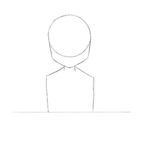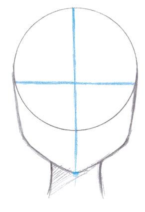 Place ta feuille à la verticale. Dessine le cercle de la tête. Ajoute le bas du visage en l’orientant légèrement vers la gauche.