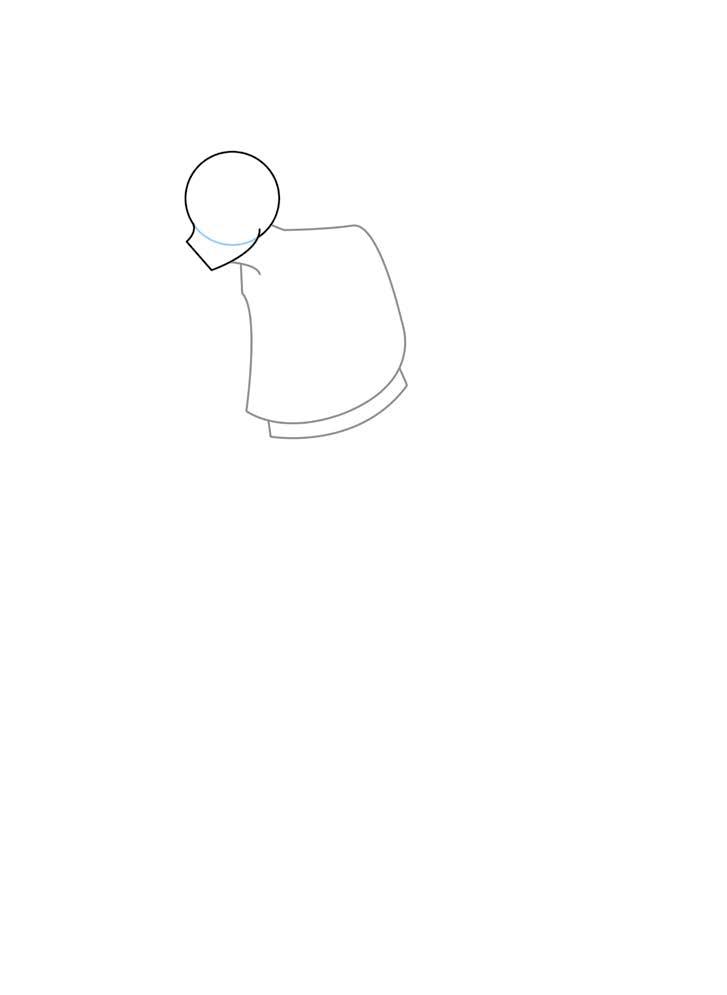 Place ta feuille à la verticale. Dessine un cercle pour le visage. Ajoute dessous son nez et son menton pour former son profil.