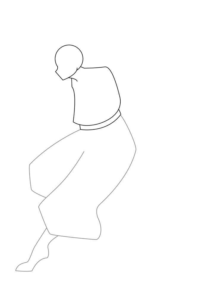 Ton personnage est en position de garde. Trace ses deux jambes qui sont fléchies.