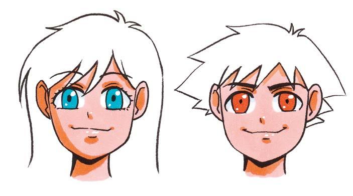 Dans les mangas, les filles ont souvent des sourcils fins et de longs cils. Les garçons se distinguent par des sourcils plus épais et leurs cils ne sont pas détaillés.