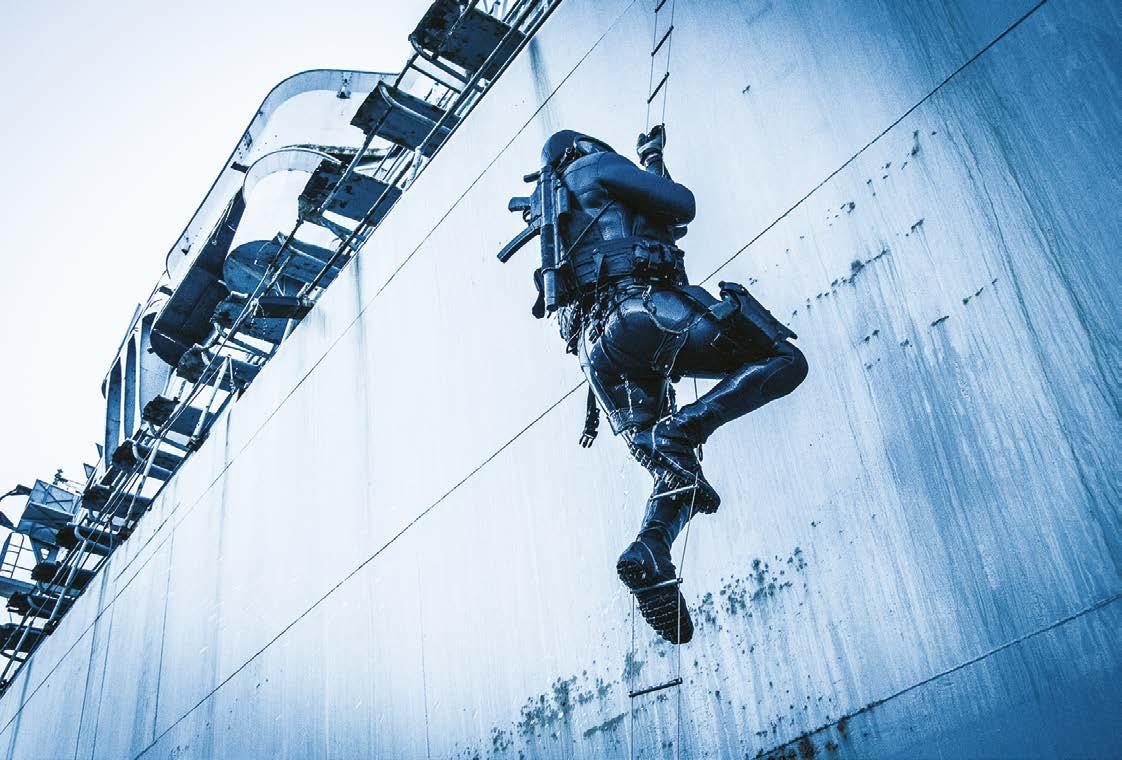 Exercice de prise d’assaut par un plongeur d’intervention d’un navire tenu par des pirates