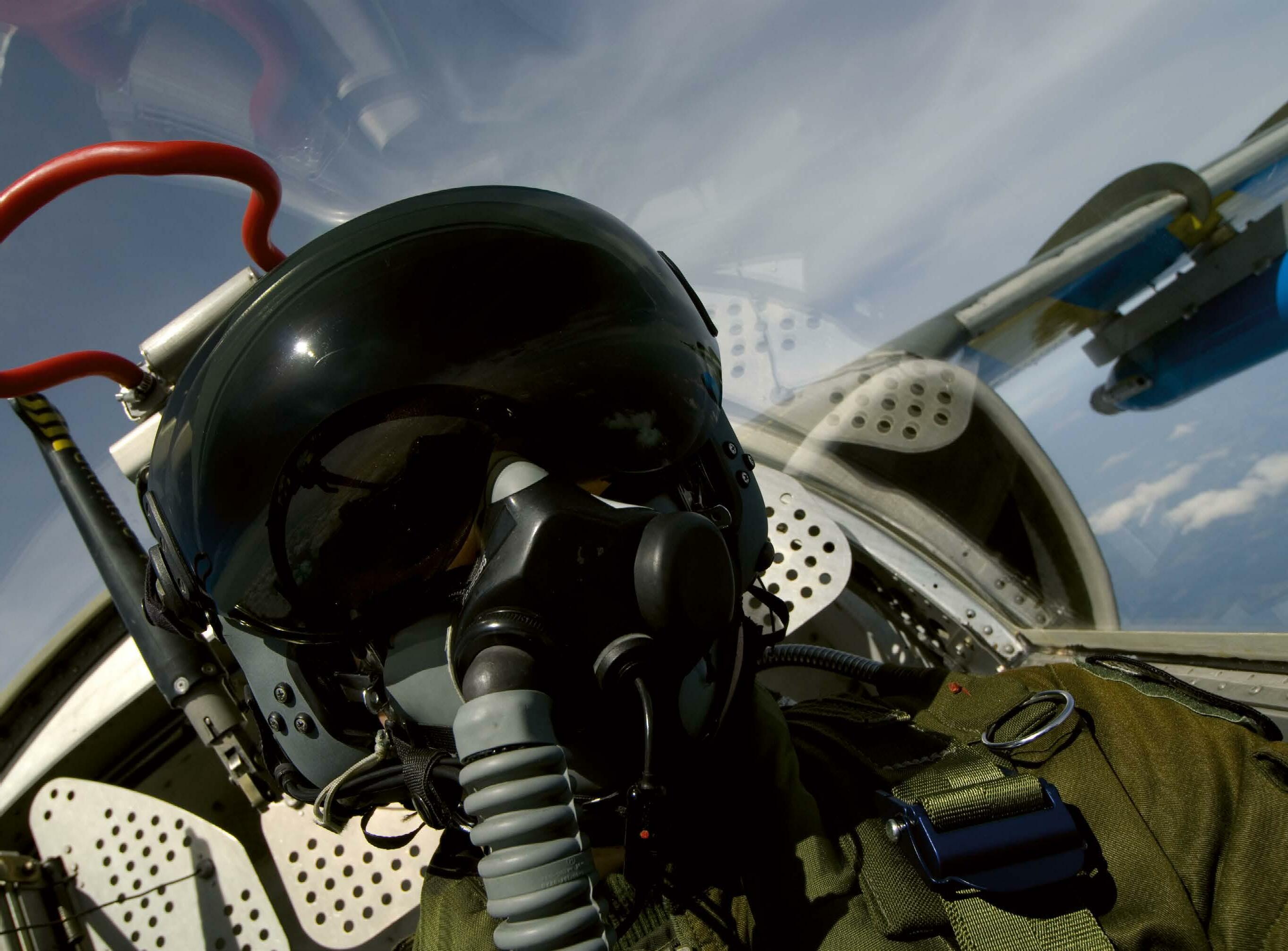 Le casque du pilote de chasse intègre un masque à oxygène, car en altitude l’air se raréfie. La combinaison comporte de nombreuses poches pour ne rien laisser tomber dans le cockpit. Le tissu est résistant au feu.