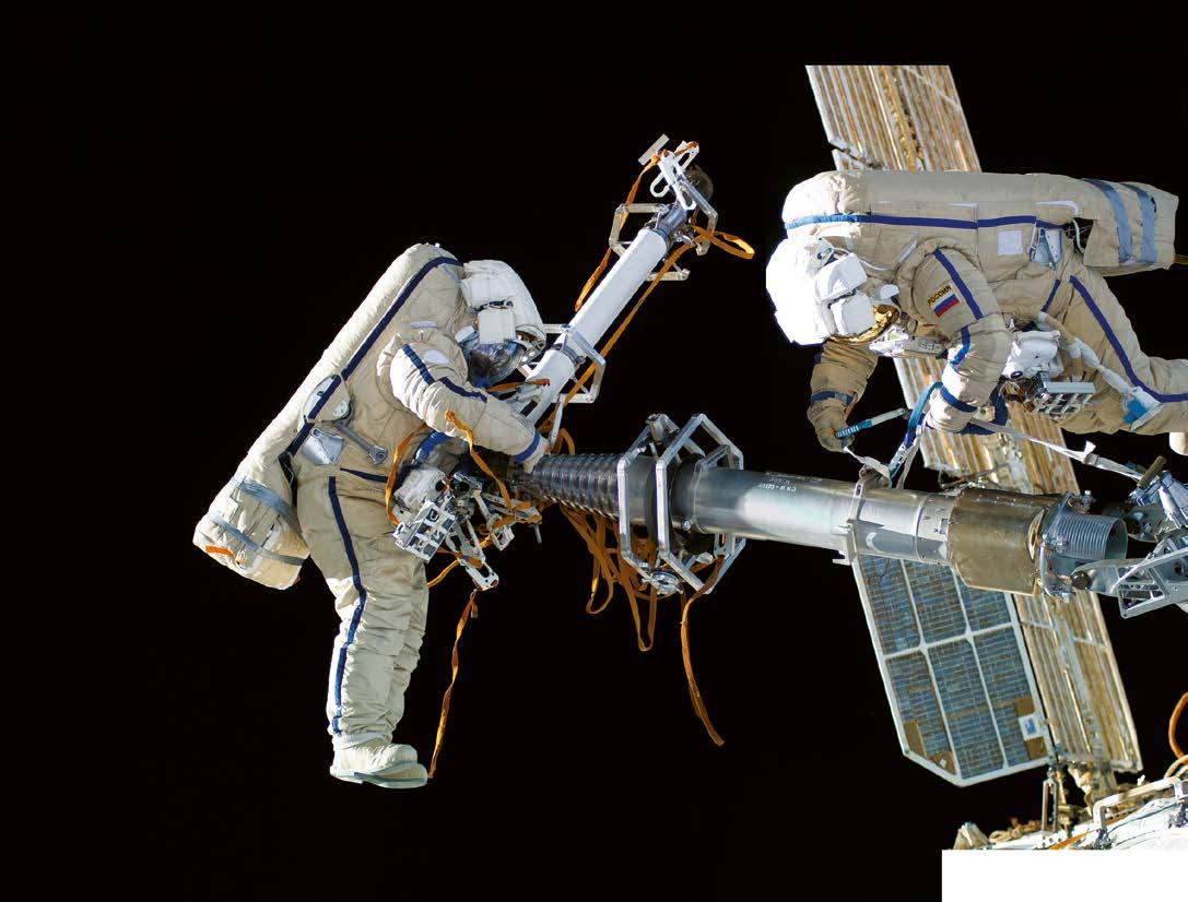 Lorsqu’ils travaillent à l’extérieur de la station (pour effectuer des réparations ou installer du nouveau matériel), les astronautes sortent toujours par deux, pour plus de sécurité.