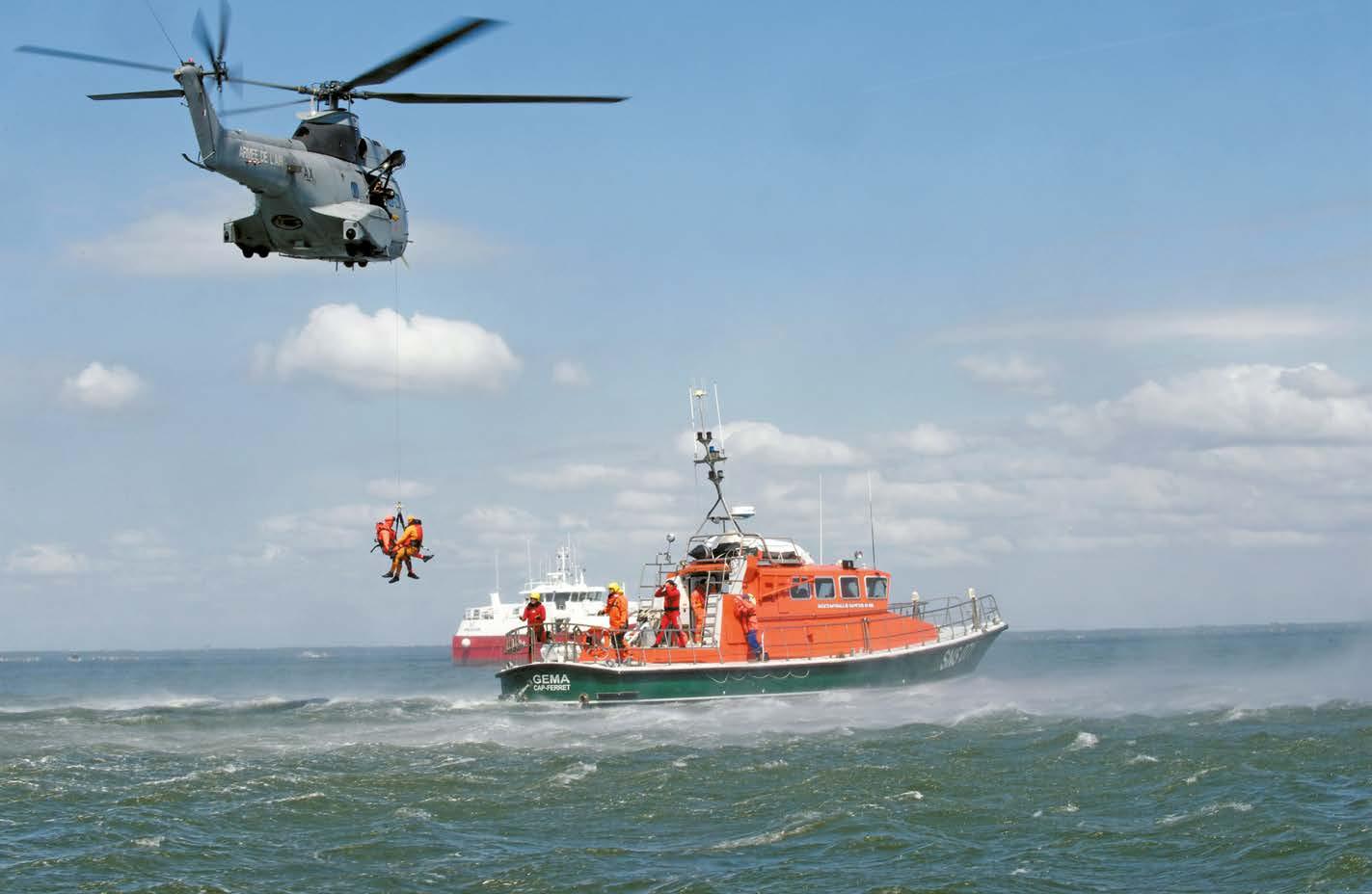 Secourir ou périr : telle est la devise des sauveteurs en mer. Jour et nuit, contre vents et marées, ils secourent les bateaux en détresse et les personnes tombées à la mer. Leur bravoure, leur dévouement, ils les paient parfois de leur vie. Tous sont bénévoles. Parmi eux, on trouve beaucoup d’anciens marins mais aussi des militaires et des plaisanciers formés au secours en mer. L’image ci-contre montre un exercice de la SNSM (Société nationale de sauvetage en mer), une association française reconnue d’utilité publique. Les naufragés sont hélitreuillés par un hélicoptère de l’armée.