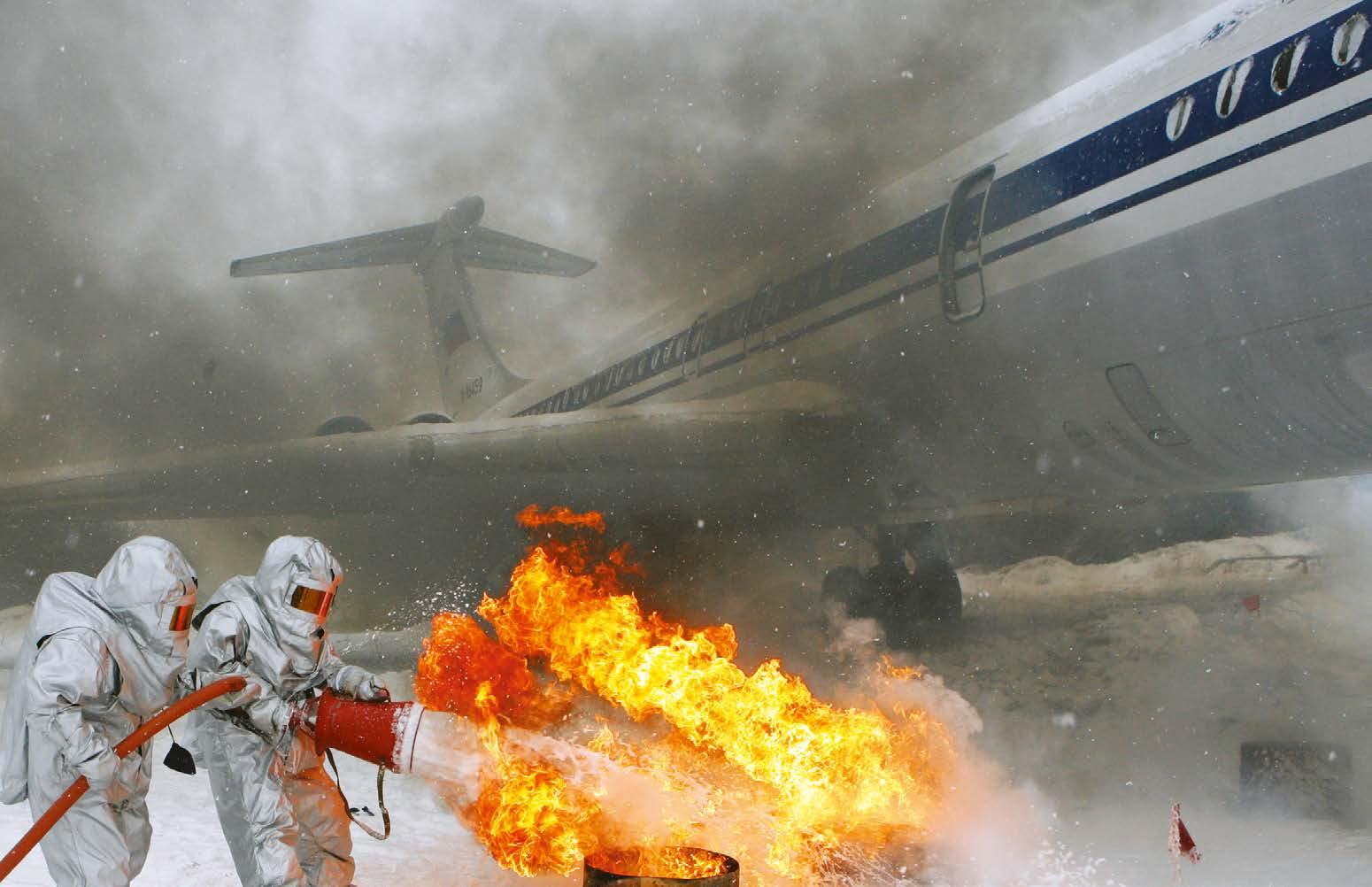 Un départ d’incendie sur un avion est particulièrement dangereux, car si les flammes atteignent les réservoirs de kérosène (un carburant très concentré), c’est l’appareil tout entier qui s’embrase et risque d’exploser à tout moment ! Parfois, c’est la vie de centaines de personnes qui est menacée. Dans les aéroports, des pompiers spécialement entraînés se tiennent prêts à intervenir au moindre incident. Ils portent une combinaison résistant aux températures très élevées engendrées par l’inflammation du carburant.