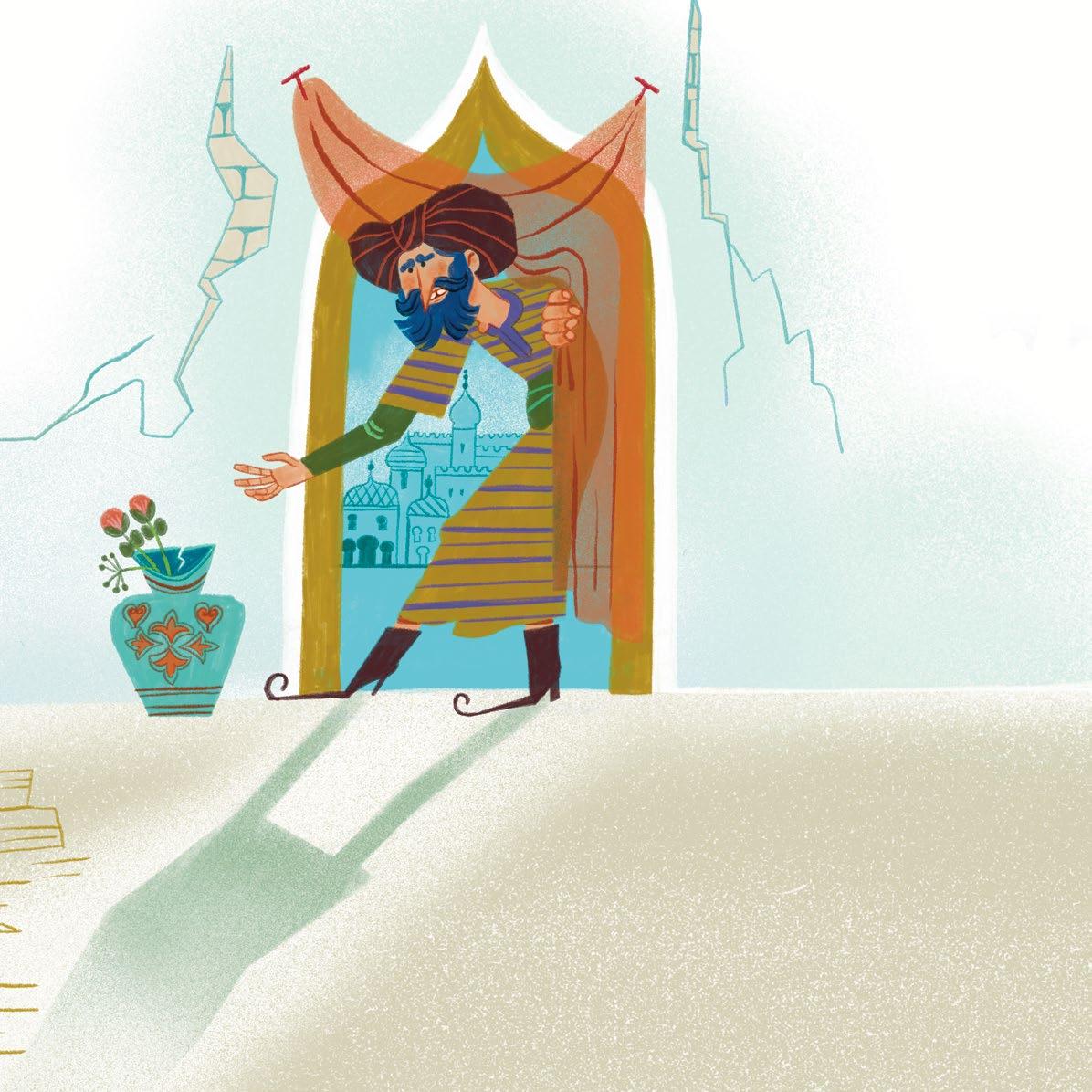 Il prétendit être l’oncle d’Aladin et il proposa au garçon de lui enseigner le métier de marchand de tissus.