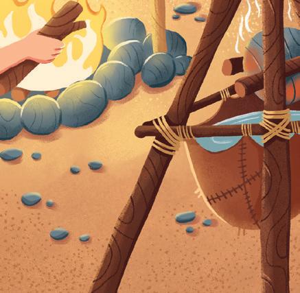Pour chauffer l’eau de l’outre, on y glisse une pierre brûlante 3 .