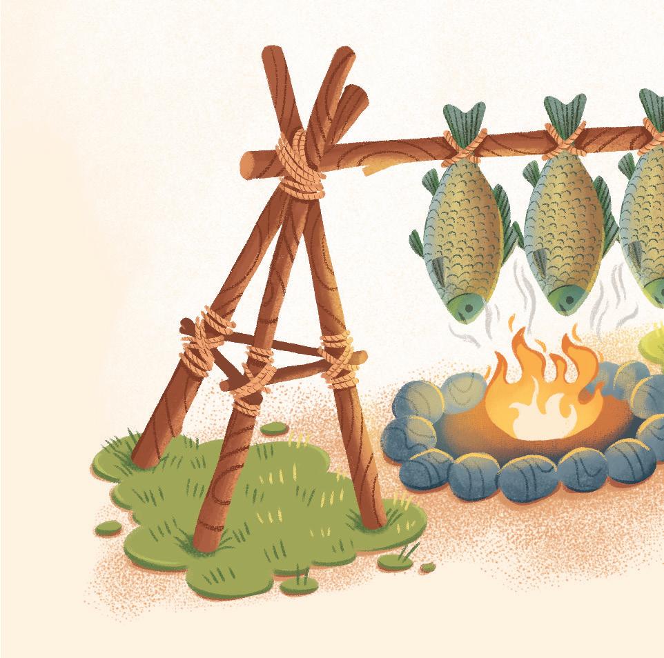 On sèche la viande et le poisson au soleil 1 ou au-dessus du feu 2