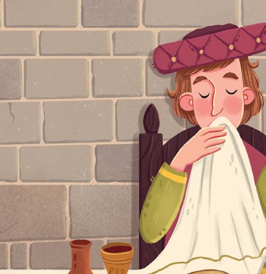 Jusqu’au Moyen Âge, on s’essuie la bouche avec les doigts ou un morceau de la nappe 1 . À la Renaissance, apparaît la serviette 2 . Même les grandes personnes la nouent autour du cou pour protéger leurs cols !