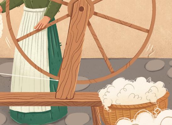 Avant de tisser ou de tricoter la laine, on la file : on confectionne un long fil avec tous les petits brins qu’on a coupés sur le mouton.