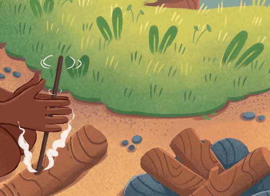 Voici environ 500 000 ans, Homo erectus, l’un de nos ancêtres, découvre comment allumer le feu : il frotte deux bâtons de bois l’un contre l’autre. Les bâtons s’échauffent et mettent le feu aux brindilles bien sèches.