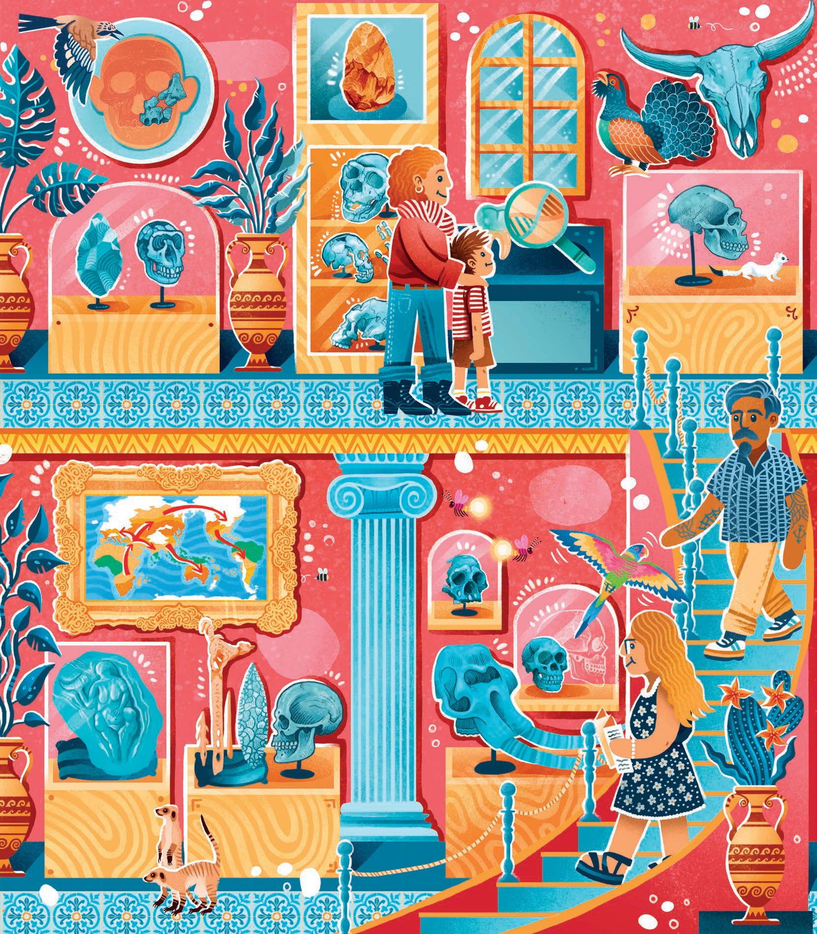 Le fait que nous soyons les seuls hominiens vivants depuis 40 000 ans ne veut pas dire que nous sommes les « meilleurs » – seulement les plus récents. En réalité, les humains modernes ont une histoire très courte comparée à celle des espèces que nous avons mentionnées. À peine la moitié ou même un tiers de ce qu’ils ont vécu : entre 500 000 et 1 000 000 d’années. C’est la première fois dans l’histoire de la Terre, il est vrai, que nous sommes les seuls hominiens, mais la recherche sur l’évolution humaine peut difficilement isoler des temps aussi « courts » sur des millions d’années. Peut-être est-ce déjà arrivé ; peut-être un Australopithecus afarensis originaire de ce qu’on nomme aujourd’hui l’Éthiopie s’est-il demandé, il y a 2,5 millions d’années, pourquoi il n’y avait pas, à ses côtés, d’êtres à la fois semblables et différents de lui. L’ouvrage de Marta et Diego est sublime. Les petits comme les grands s’y retrouveront grâce à différents niveaux de lecture, basiques ou plus complexes. Ils nous racontent l'hominisation et nous expliquent à quel moment notre sous-tribu a commencé à montrer les signes d’une conscience avancée. Prêts ? C’est ici que commence le voyage…
