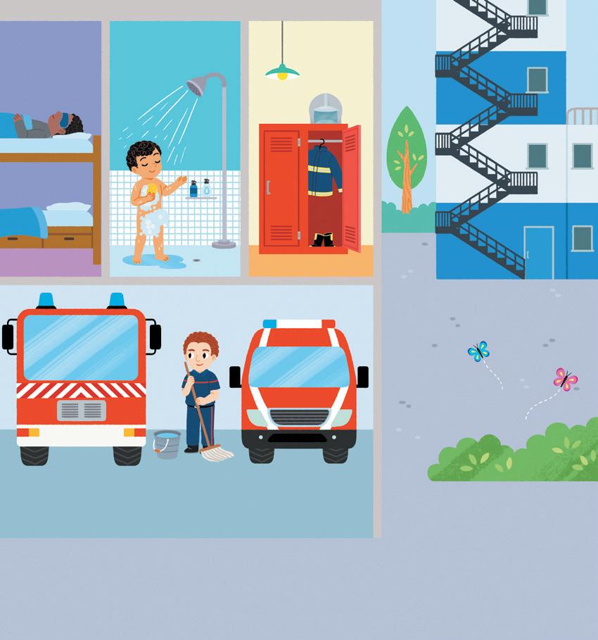 Il y a autant de pompiers dans une caserne que d’enfants dans une classe : environ 30 personnes, qui se relaient toutes les 24 heures. Ainsi, il y a toujours des pompiers dans la caserne, mais ce n’est pas la même équipe.
